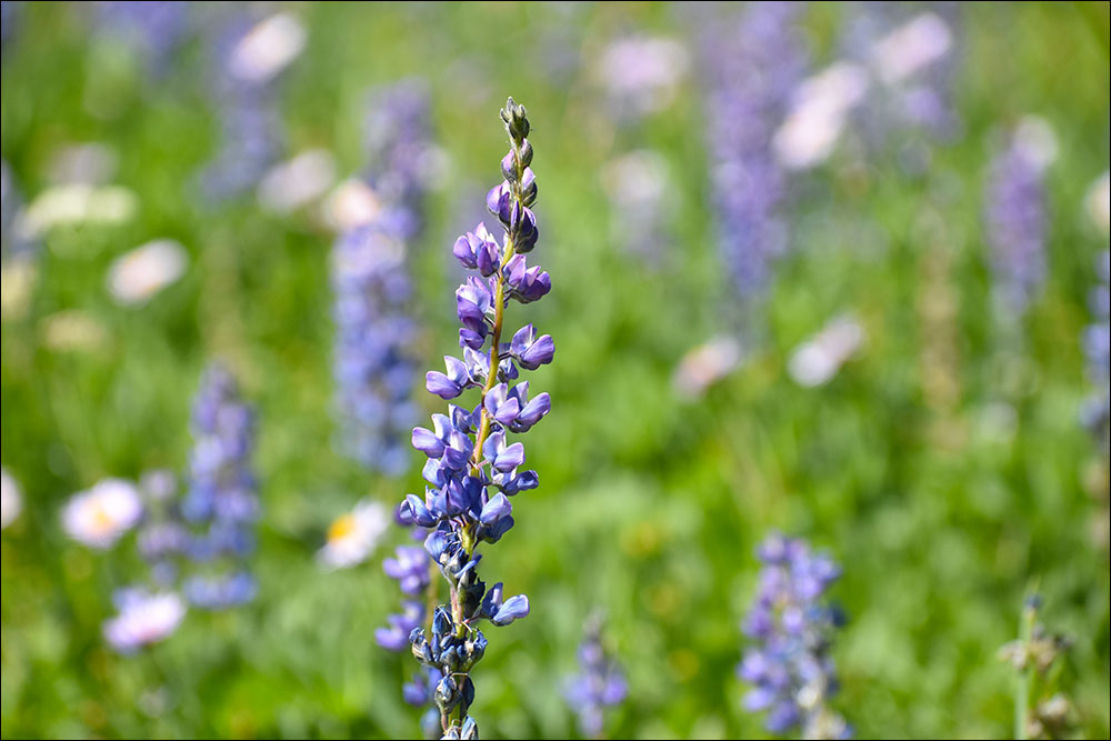 Snows linger in these regions until late June or early July (sometimes longer; I saw snow packs huddled in the shade of the forests along the meadows even now in mid-August). This compresses the growing season as inclement weather begins to move into the subalpine zones by mid-to-late September, heralding the coming winter snows. Local flora must germinate, grow, and pollinate within a very short time frame. This results in colorful, wall-to-wall carpets of wildflowers busting out all at once. Entire swaths of the land look like they’re painted in the purest of pure blues, reds, yellows, etc.