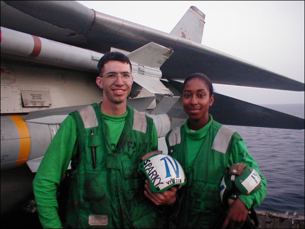 (Niceville, Florida; 11 September 2021) – Twenty years ago today I was standing on the flight deck of USS Carl Vinson (CVN 70) as we spun up the Tomcats of VF-213 for a routine day of flying over the Arabian Sea. One of our civilian tech reps had a small camera and waved to me, telling me to ‘strike a pose,’ so I did. He snapped the photo at about, oh, 08:00 or so that morning (Arabian Sea Time). Not long after, I was told to turn in my tool pouch, grab a camera, and go to the ATO office. I was being sent aloft in a C-2 Greyhound to photograph our Tomcats in the air for the cruise book. Getting a cat shot and a trap, and hanging out the back of an aircraft at 4,000 feet with only a gunner’s belt keeping me in the plane, was going to be the greatest day of my first deployment.