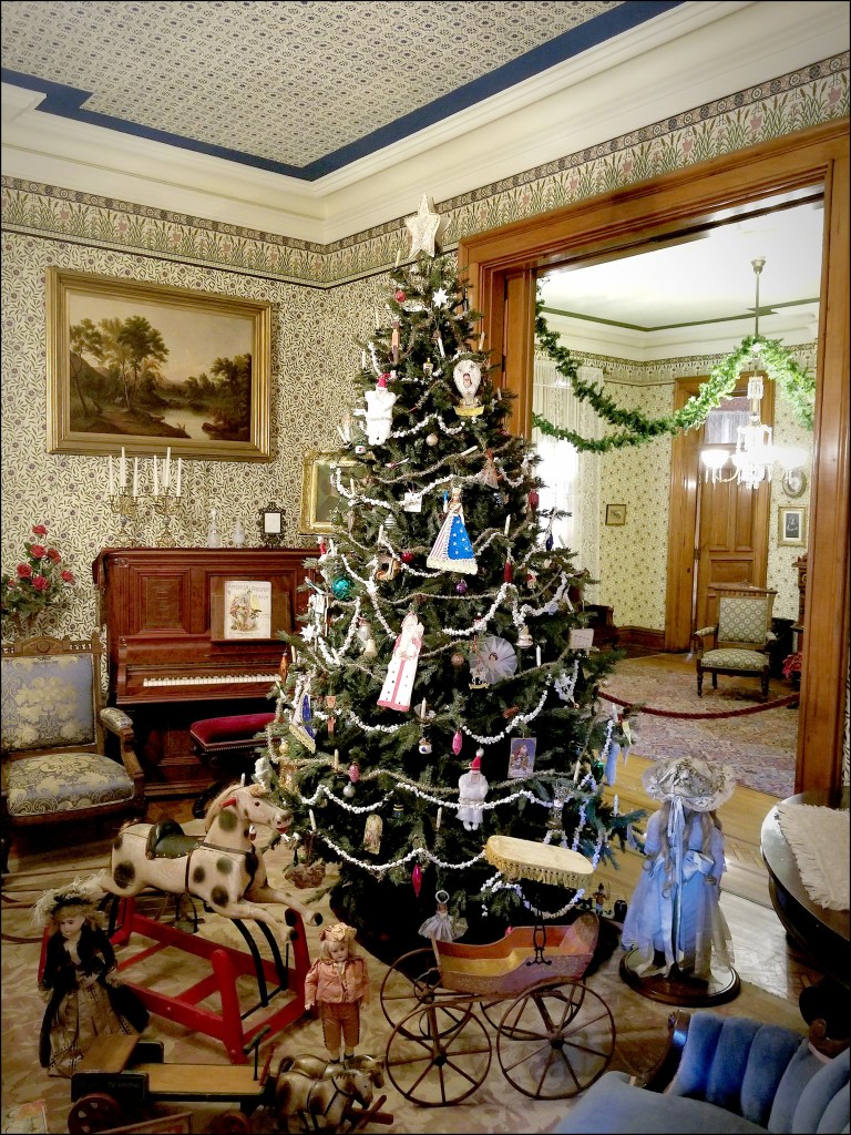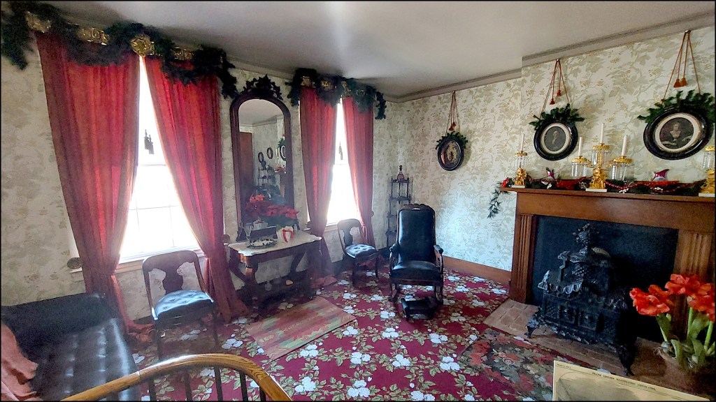 The 1860s home of Abraham and Mary Lincoln in Springfield, Illinois, was a step closer to the decorations we know today. Although Christmas trees were commonly known in America by the mid-19th century, they were still confined to the homes of German-Americans. The Lincoln boys certainly saw the Christmas trees in the houses of their German friends, but the Lincoln home itself, like most Americans, was decked out with evergreen boughs and the occasional red bow. Otherwise, like General and Mrs. Washington in the 18th century, the great mark of the holiday was the lavish spread of food on the dining room table, not tinsel titillating the optical senses.