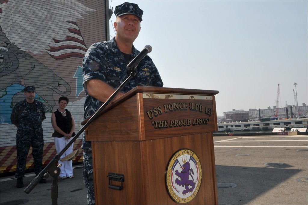 The late Captain Hayes was an incredible leader under whom I served for too brief a season. He took over the ship while we were still recovering from having a former CO fired at the end of the 2010-20111 deployment. Our temporary CO got us home safely and helped us begin the recovery process we needed to go through following that event, but Captain Hayes brought us fully back into the light. Many of us began getting excited to be underway again aboard Ponce under his leadership—and that’s saying something considering what we went through on the deployment!