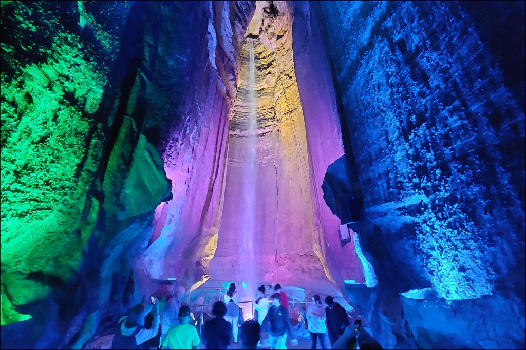 Ruby Falls is one of the tallest (perhaps the tallest) underground waterfalls open to the public in the United States. The water cascades 145 feet down into a pool inside a massive limestone cavern. The place is cathedral-like in its size and shape. The falls are 1,120 feet beneath the mountain’s surface. Lookout Mountain itself rises 1,532 feet above the surrounding landscape, meaning the falls themselves are actually 412 feet above the base of the mountain!